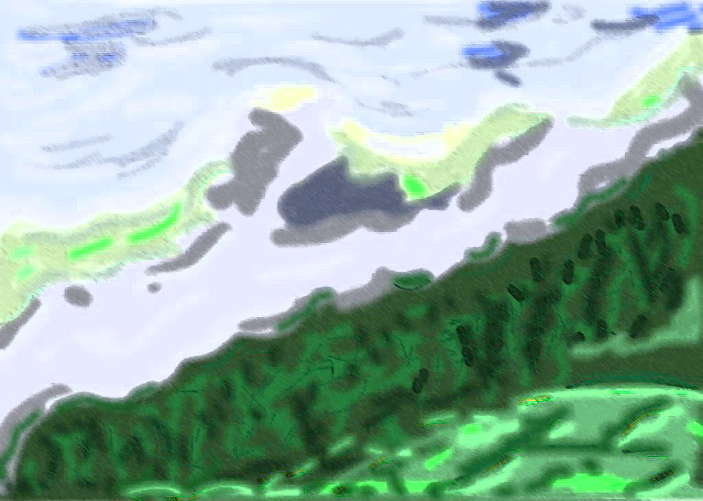 Borroso, agotado de lluvia. Vacío de pasos, resguardados esperando el prometido sol. Pero mientras llega hay que reconocer su belleza en forma de agua desbordada, en sonidos de arroyos y cascadas que han perdido su camino. Batanes, comenzad a golpear, que hoy apenas destacais sobre la lluvia.